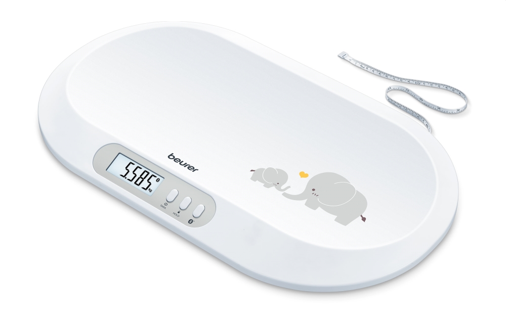 Beurer BY 90 baby scale, Data transfer via Bluetooth, Automatic and manual hold function, Curved weighing surface, 10 Measurement memory spaces