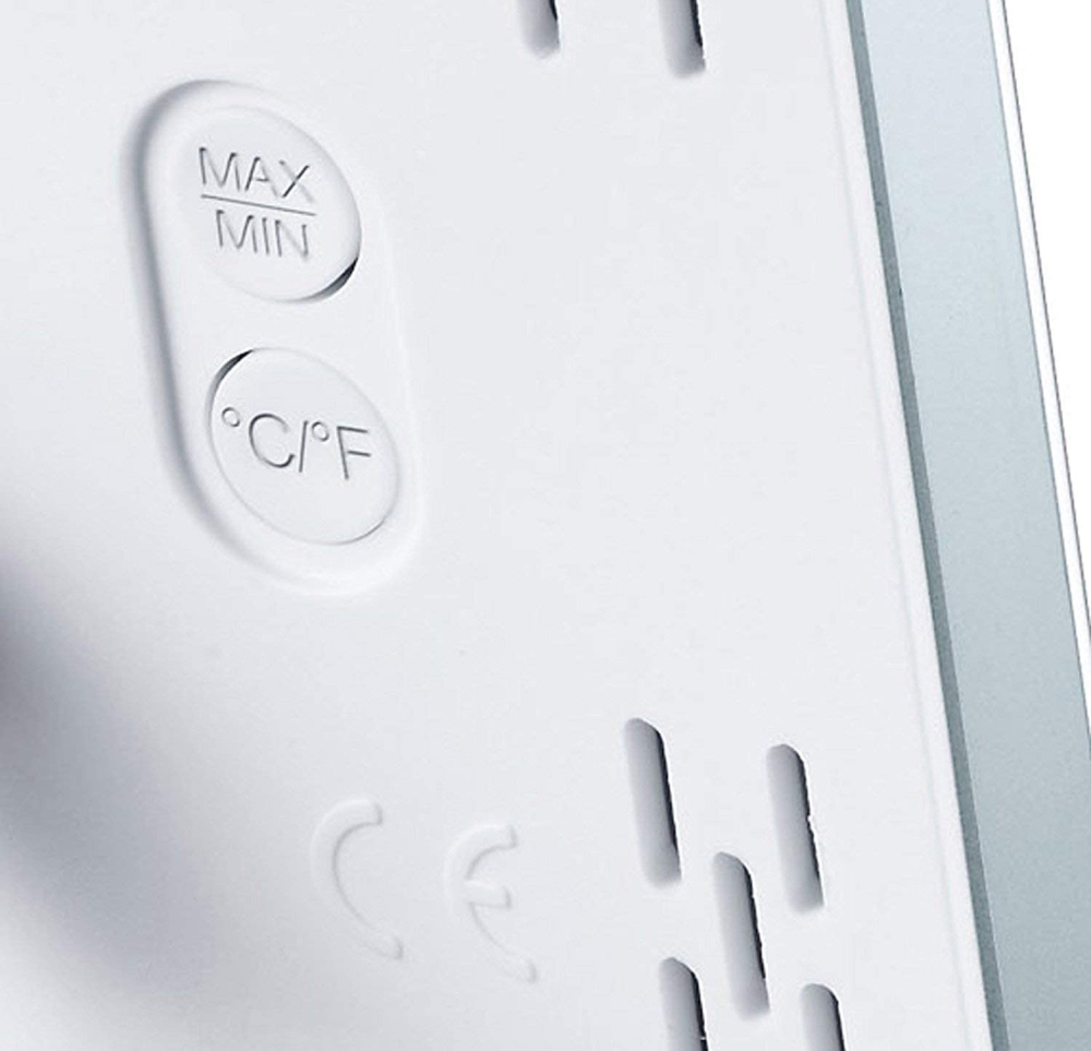 Чрез този хигрометър може да следите температурата и влажността на дома си удобно, бързо и лесно. Той има следните характеристики: температурен диапазон от 0°C до +50°C; точност на измерване ±1°C от 0°C до +40°C и ±2°C от 40°C до +50°C; показва максимална и минимална температура и влажност; символ „усмихнато човече“ при температура 20-25°С и влажност 30-60% (идеална стойност); символ „човече“ при всякаква температура и влажност под 30%; символ „намръщено човече“ при всякаква температура и влажност над 60%; голям и лесен за разчитане дисплей; поставка за изправено положение; кука за закачане на стена; избор между две мерни единици: °C / °F.