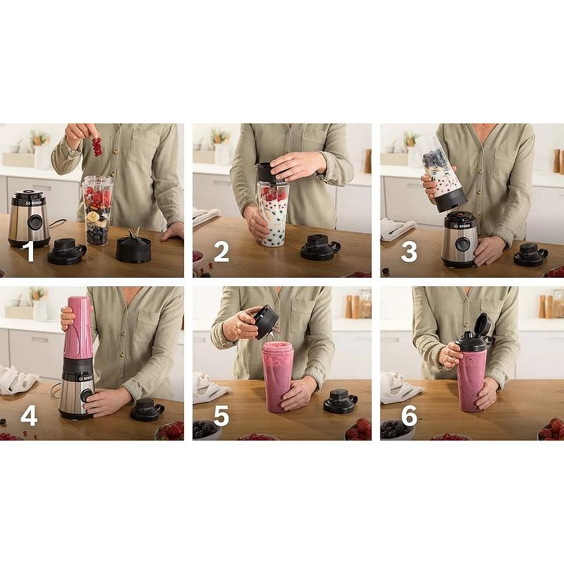 Не на последно място, висококачественият корпус от неръждаема стомана придава на блендера изискан вид и гарантира дълготрайност и лесна поддръжка. А когато сте в движение, можете да се възползвате от удобната бутилка ToGo със защита от течове, която позволява да си вземете любимото смути навсякъде с вас.