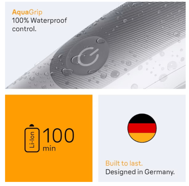 Водоустойчив дизайн: 100% водоустойчив, подходящ за използване с пяна или гел, както и под душа.