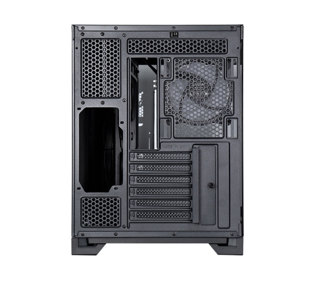 | Вентилатори | Bottom: up to 3 x 120 mm or up to 2 x 140 mm; Top: up to 3 x 120 mm or up to 2 x 140 mm; Rear: up to 1 x 140 mm; Side: up to 2 x 120 mm |