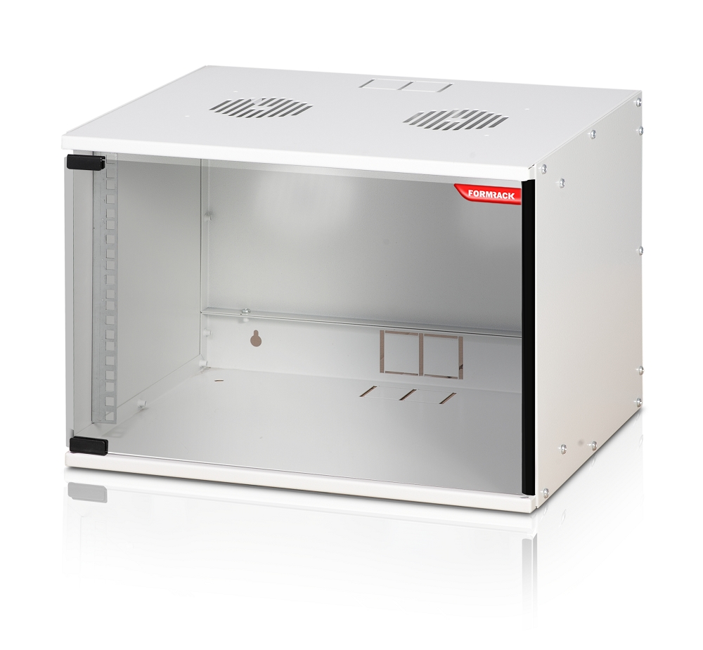 Formrack 19″ Wall Mounted rack 7U SOHO 512/400mm, height: 358mm, loading capacity: 50kg., tempered glass door, 19″ front rails