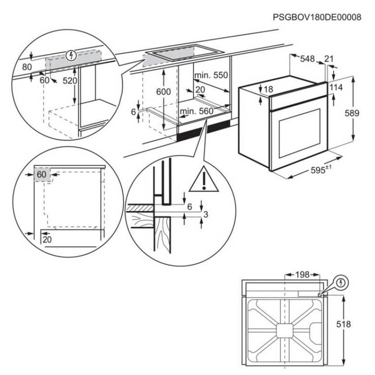 Размери за вграждане, (В/Ш/Д), мм: 600/560/550