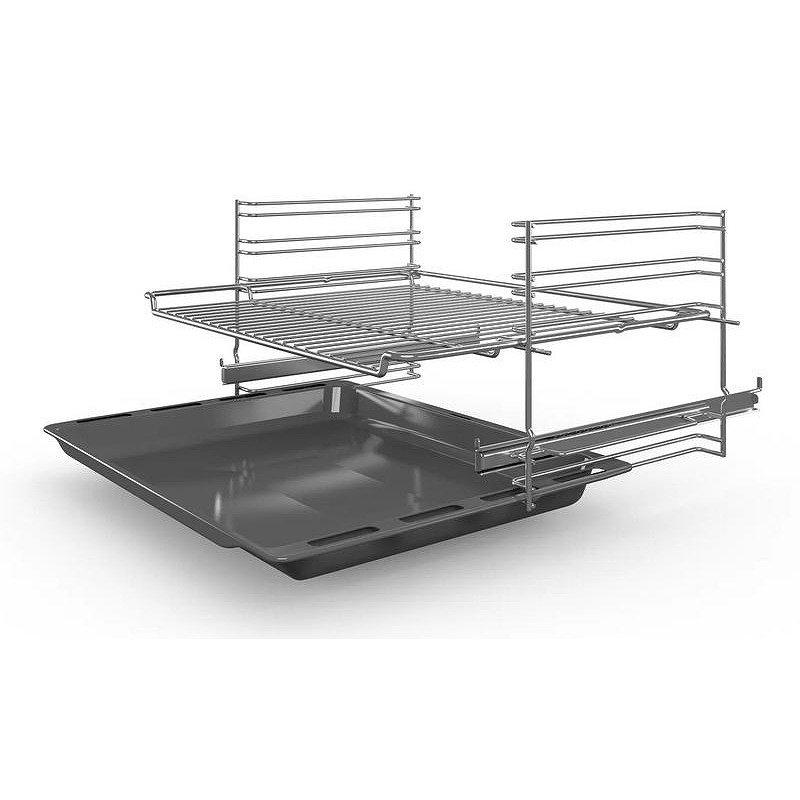За допълнително удобство, фурната е оборудвана с телескопични водачи, които улесняват изваждането и поставянето на тави и решетки. Осветлението вътре във фурната осигурява отлична видимост, така че винаги да имате ясна представа за състоянието на вашите ястия.