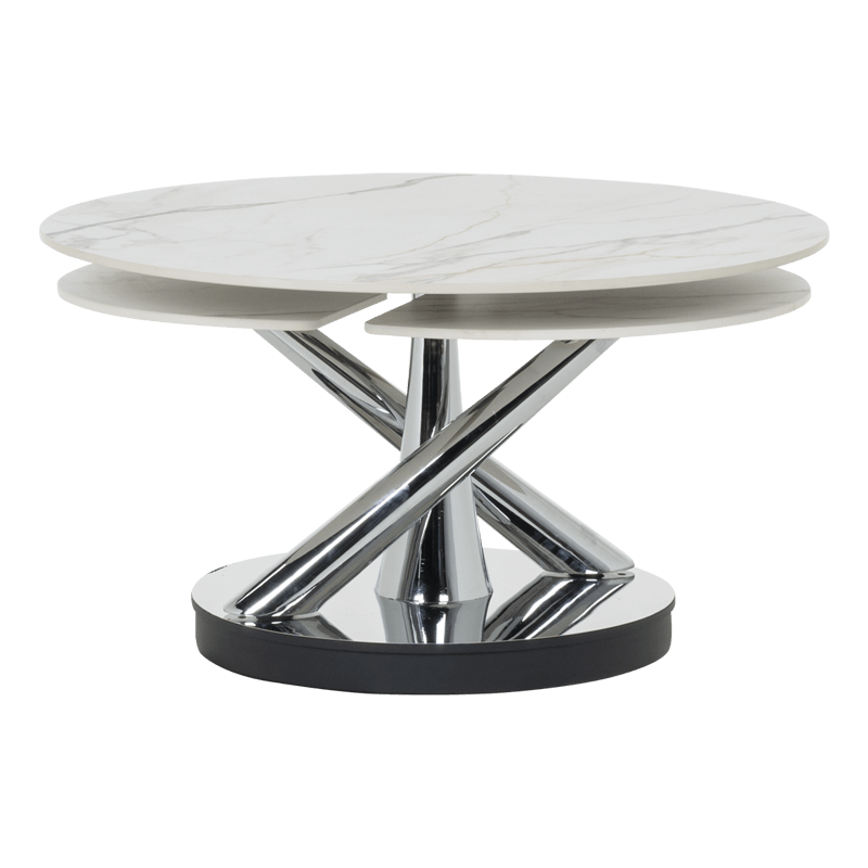 Комплект холни маси CASIMIRO предлага перфектна комбинация от изчистен дизайн и функционалност, която ще се впише идеално във всеки съвременен интериор и създава възможност за гъвкаво подреждане и максимално удобство при употреба. Плотовете са изработени от устойчива керамика, което придава елегантен бял завършек и улеснява поддръжката. Краката от неръджаема стомана гарантират стабилност и здравина, докато компактните размери правят комплекта подходящ както за малки, така и за по-просторни помещения. Със своята изчистена визия и функционален дизайн, CASIMIRO е идеалният избор за вашата дневна – едновременно практичен и елегантен акцент в дома ви. Пълна информация за размерите и характеристиките на модела ще намерите в таблицата в таб/поле „Техническа информация“.