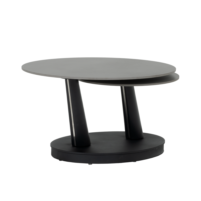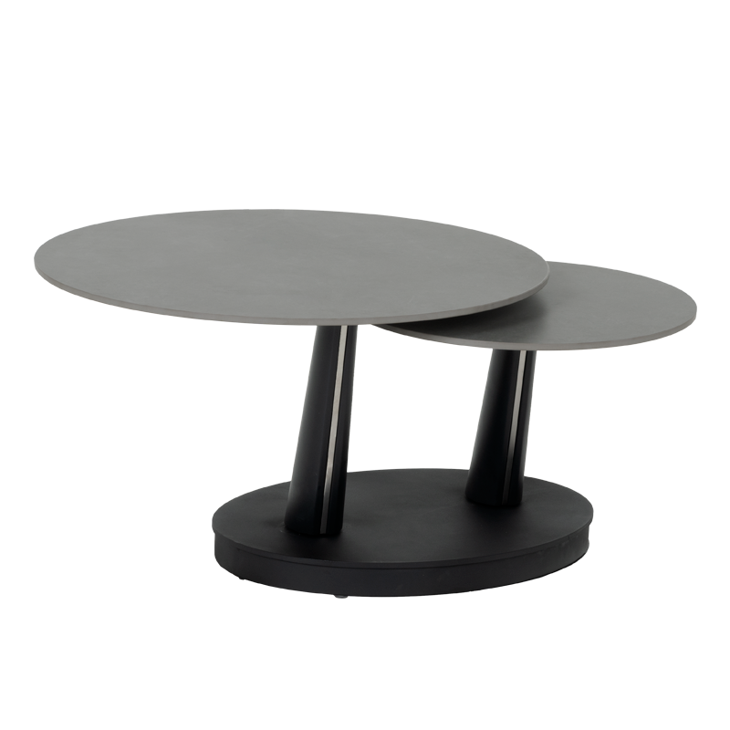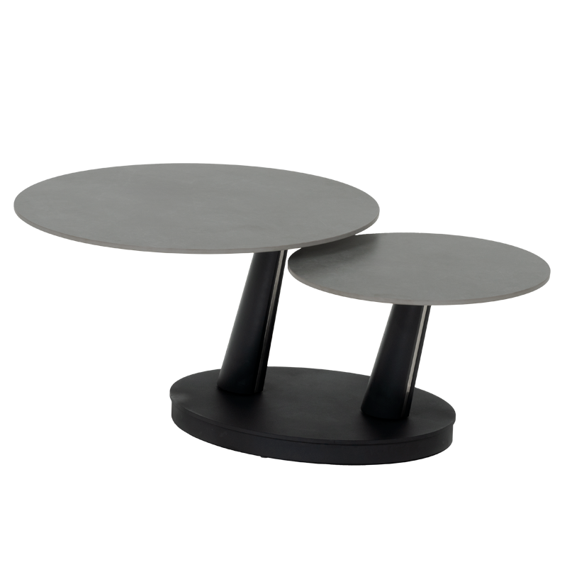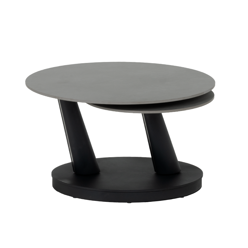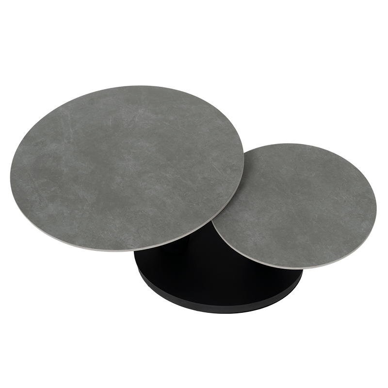 Комплект холни маси CORO впечатлява с иновативен и елегантен дизайн, който съчетава функционалност и модерен стил. Плотът е изработен от висококачествена керамика в изтънчен сив цвят, придавайки изчистен и съвременен вид. Основата от праховобоядисан метал в черно осигурява стабилност и хармонично допълва дизайна със своята геометрична форма. Иновативният механизъм позволява завъртане и разширяване на втория плот, осигурявайки гъвкавост и удобство според нуждите ви. Комплект холни маси CORO е идеалният избор за всеки модерен интериор, съчетавайки стил и практичност в едно. Пълна информация за размерите и характеристиките на модела ще намерите в таблицата в таб/поле „Техническа информация“.