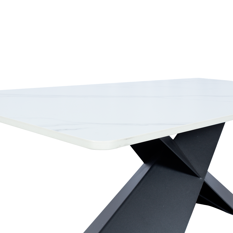 Холната маса DABKI S съчетава елегантност и съвременен стил. Плотът, от 12 мм висококачествена керамика, излъчва изтънченост и издръжливост. Основата от праховобоядисан метал в черен матов цвят впечатлява с уникалния си кръстосан дизайн, който създава усещане за динамика и стабилност. DABKI S е израз на модерен минимализъм, който допълва идеално всеки интериор. Пълна информация за размерите и характеристиките на модела ще намерите в таблицата в таб/поле „Техническа информация“.