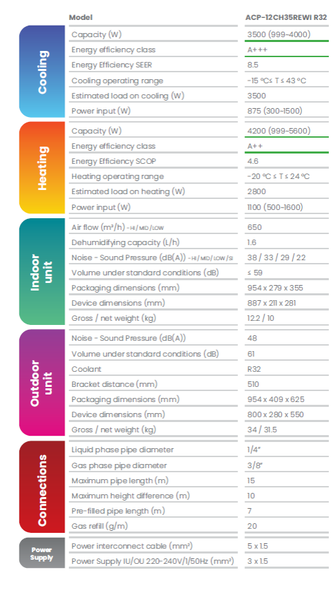ACP-48CC140AERI се препоръчва като решение за климатизация на големи бизнес и жилищни пространства. Въпреки, че притежава голям капацитет, енергийният клас