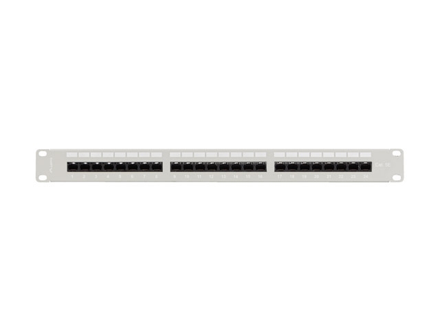 Lanberg patch panel 24 port 1U 19″ CAT.5e utp with cable organizer grey