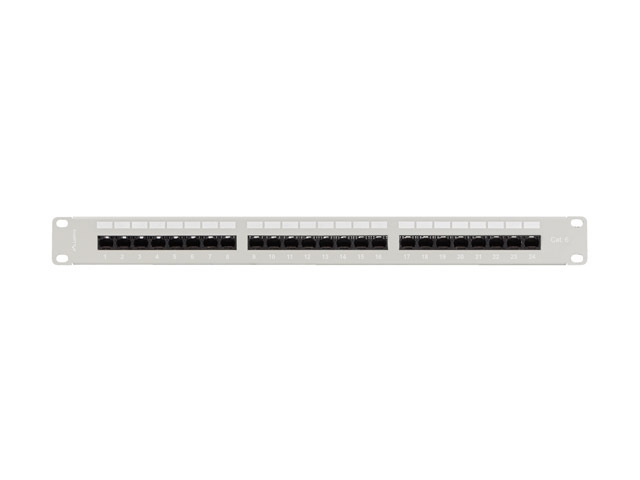 Lanberg patch panel 24 port 1U 19″ CAT.6 utp with cable organizer grey