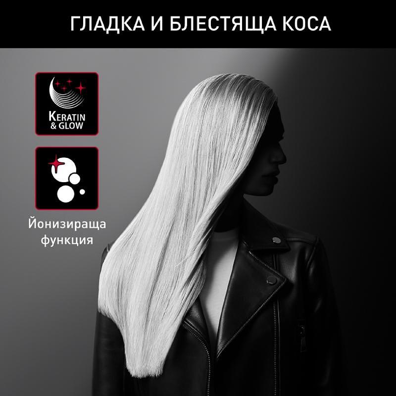 Подобрете рутинните си процедури за красота с ефективна работа и безупречен блясък. Този стилизиращ уред е с ексклузивното покритие Keratin & Glow, което изправя косата ви с перфектно плъзгане и гладко завършване без накъсване. Открийте многофункционалната преса коса, с която да овладеете всякаква прическа – дори и къдрици. Нейните 10 температурни настройки действат бързо върху всеки тип коса, а с ефективността на системата от плаващи плочи с едно движение, ще излезете от дома си в най-добрия си вид за нула време!