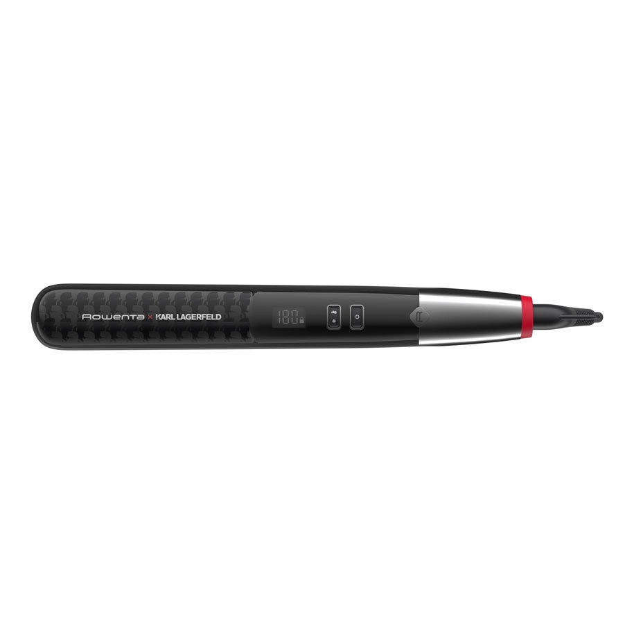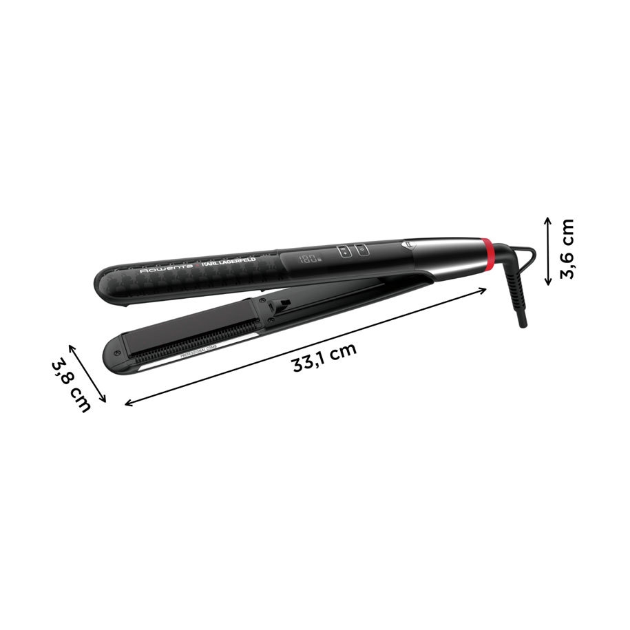 Преса за коса Rowenta Karl Lagerfeld Pro Stylist, регулируема температура 140 ° C до 210 ° C, ексклузивно покритие Keratin & Glow, система Liss & Curl. Пресата за коса Rowenta Karl Lagerfeld Pro Stylist е професионален инструмент, който ще ви помогне лесно да изправите косата си, независимо от типа и. Йонният генератор и изключителното покритие Keratin & Glow придават на косата блясъка и формата, които желаете. Температурата може да се регулира от 140°C до 210°C, с щадяща настройка от 170°C за защита на косата ви. Плаващите плочи автоматично се адаптират към дебелината на кичура коса, а LCD екранът е лесен за разчитане. Пресата за коса Rowenta Karl Lagerfeld Pro Stylist ще ви помогне да оформите косата си точно като в салон. С едно движение получавате меки и блестящи кичури благодарение на ексклузивното покритие Keratin & Glow, което предлага перфектната комбинация от прокератин и турмалин, за да получите мека коса с до 41% повече блясък сравнение с естествена коса.