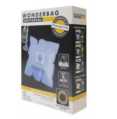 Rowenta WB406140, WonderBag Classic, Vacuum Bags, Set of 5 bags + 1 adapter ring (universal), 3-layered, Universal, Textile,