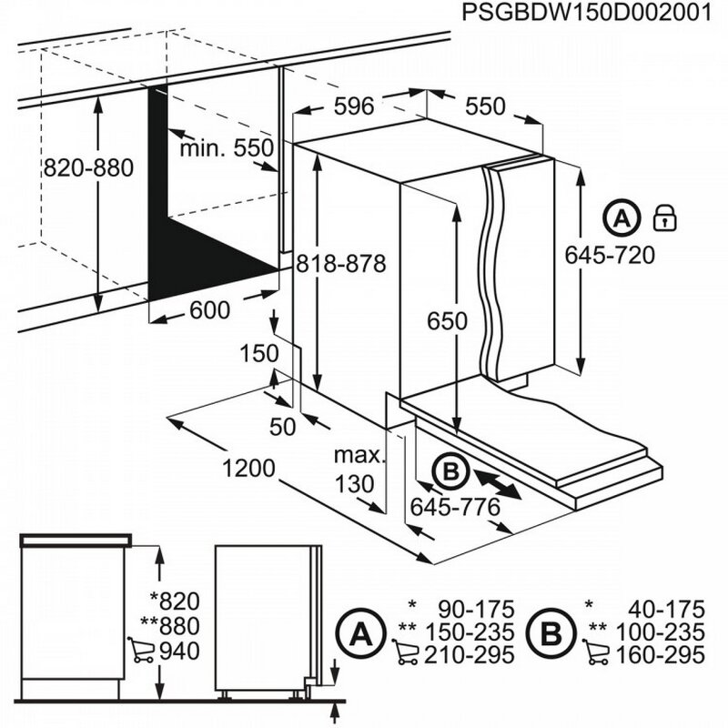 - Размери за вграждане ВxШxД (мм): 820/900 x 600 x 550