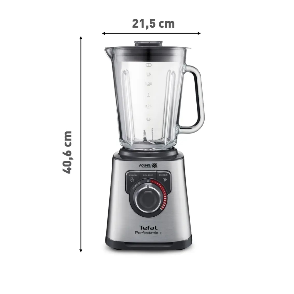 С високоскоростния блендер Perfectmix+ се наслаждавате на перфектно блендиране, благодарение на технологията Powelix, комбинираща 6 остриета от неръждаема стомана с 3 допълващи се действия за доставяне на перфектен резултат с всеки продукт. С мощен и здрав 1200W мотор, блендерът осигурява бърз резултат, с три настройки (смути, трошене на лед и автоматично почистване) за направа на най-различни смеси без усилие. Неговата голяма кана е идеална за цялото семейство и е от термоустойчиво стъкло без риск от счупване. Осветения селектор на скоростта с пулсиращ режим ви дава пълен контрол, а подвижното острие осигурява лесно почистване. За завършек, системата за въздушно охлаждане на блендера предотвратява прегряването, а тамперът ви дава допълнително удобство при разбиването на всякакви смеси.