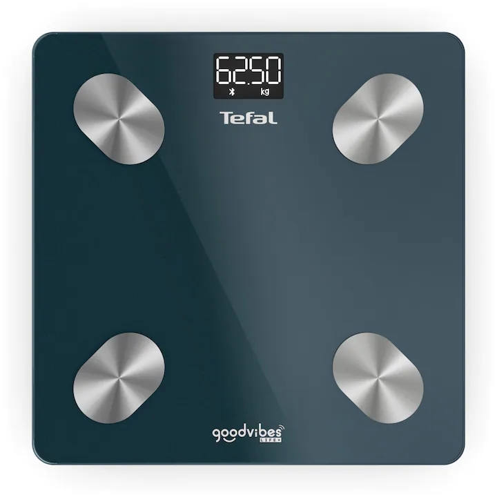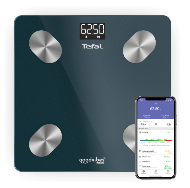 С интелигентният кантар Tefal Goodvibes Life + и неговото специално приложение ще можете да опознаете тялото си в детайли и да получите различни точни измервания, като ИТМ, процент на мазнини и мускулна маса, също така и костна маса, телесна вода, метаболитна възраст и други. Удобното за потребителя приложение ще ви позволи да наблюдавате напредъка си и да задавате цели за тегло и процент мазнини. Без ограничения за броя на потребителите, кантарът е идеален за поддържане на форма на цялото семейство и приятелите. Максималното поддържано тегло е 180 кг, с точни градации на 100 гр.