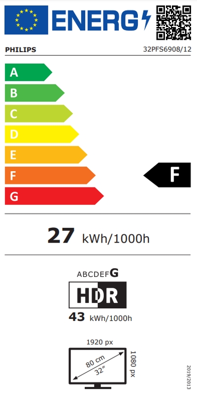• Енергиен клас: F, 27 kWh/1000h