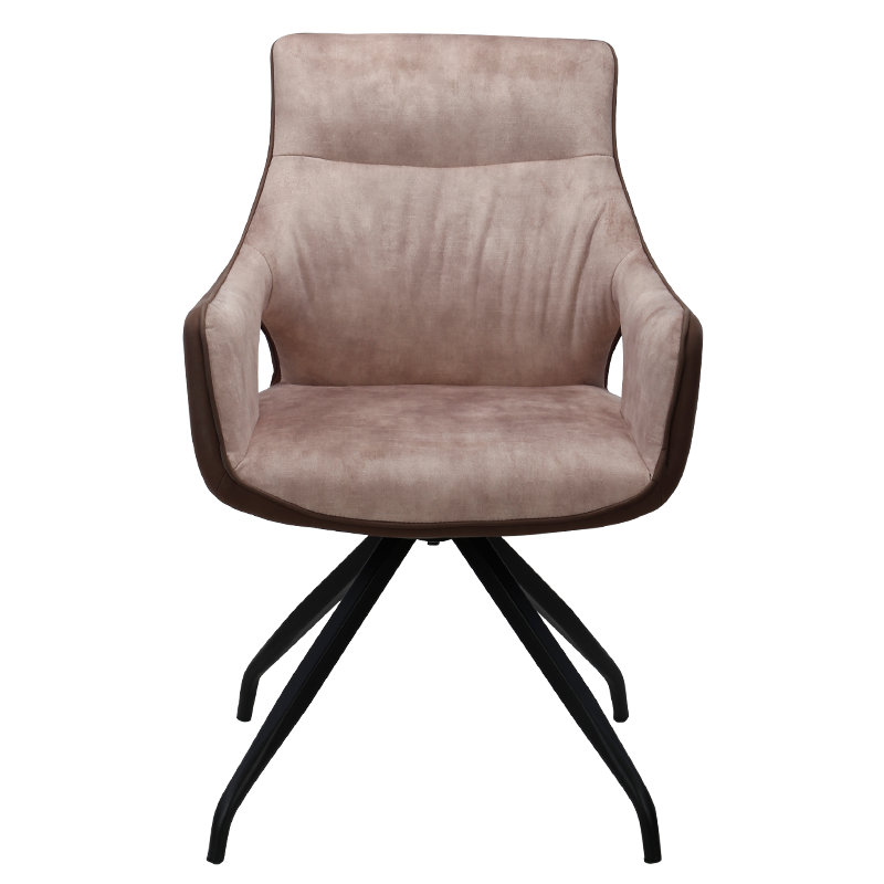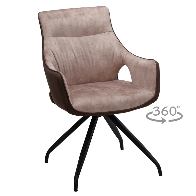 DUDLEY е модерен трапезен стол с интересен дизайн. Изработен е от висококачествена дамаска и крака от праховобоядисан метал. Mоделът разполага с подлакътници и с функция за въртене на 360°. Стилен и оригинален, той подхожда на интериора на съвременния дом, както и на първокласни ресторанти. Пълна информация за размерите и характеристиките на модела ще намерите в таблицата в таб/поле „Техническа информация“.