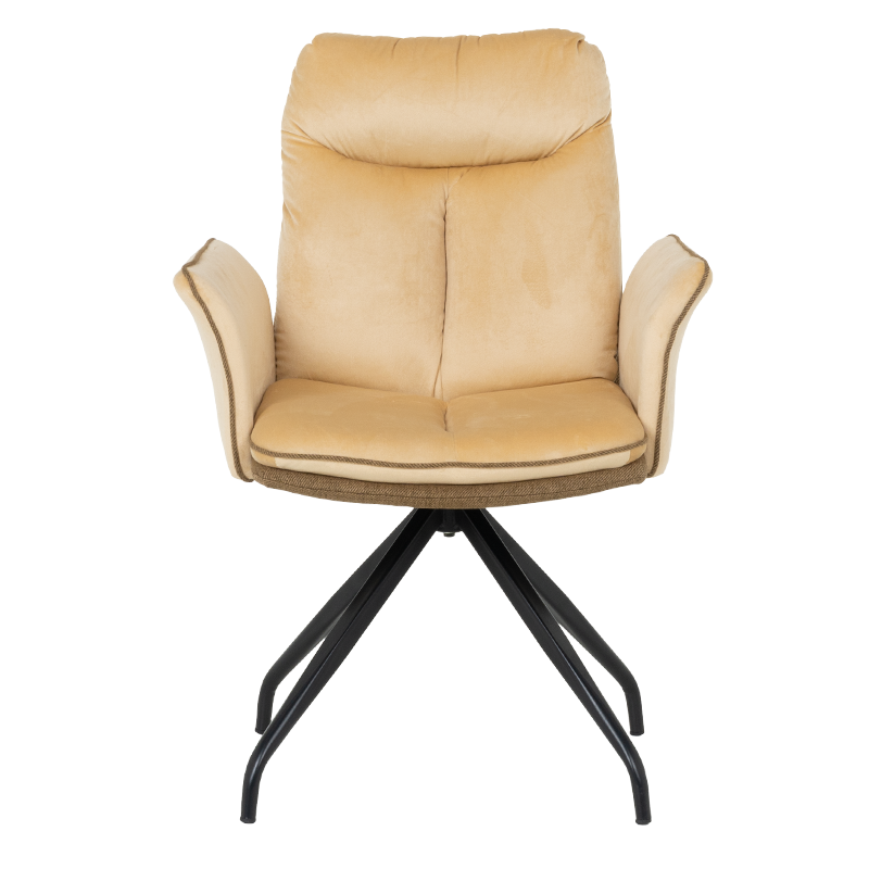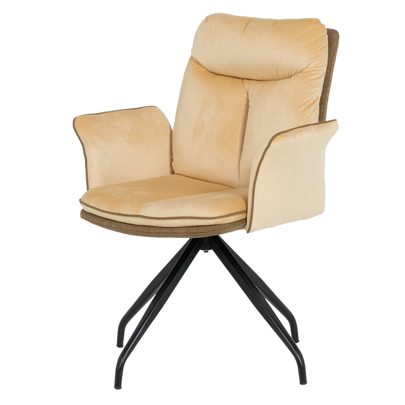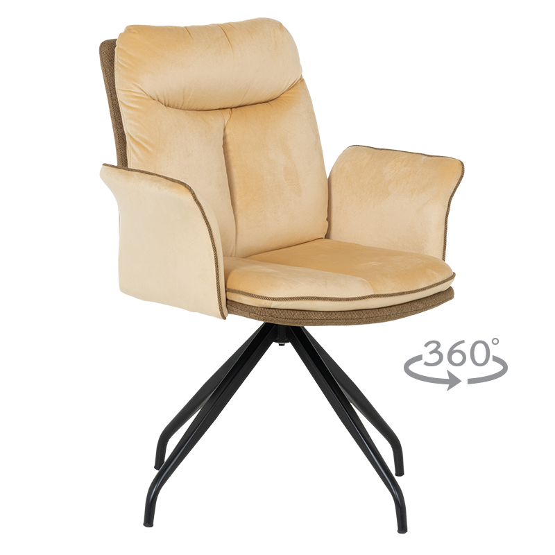 MARLOW 1 е трапезен стол с модерна визия. Той разполага с широки седалка и облегалка, тапицирани в мека дамаска, допълнени с възглавници за максимален комфорт. Подлакътниците повишават удобството на седящия. Основата е изработена от метал в елегантен кремав цвят и предлага иновативна функция за 360° въртене. Пълна информация за размерите и характеристиките на модела ще намерите в таблицата в таб/поле „Техническа информация“.