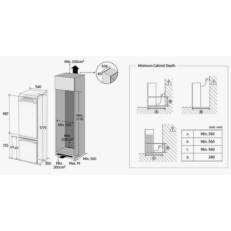 Размери за вграждане (В/Ш/Д) (mm): 1778/555/560