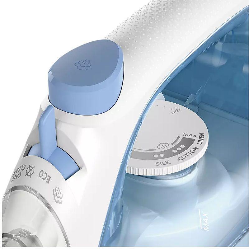 Иновативните функции на ютията включват 90 гр/мин паров удар за отстраняване на упоритите гънки и 20 г/мин непрекъсната пара, което гарантира гладки резултати без усилие. Плочата с незалепващо покритие позволява лесно плъзгане върху всякакви тъкани, а прецизният връх улеснява достигането до труднодостъпни места като копчета и ъгли.